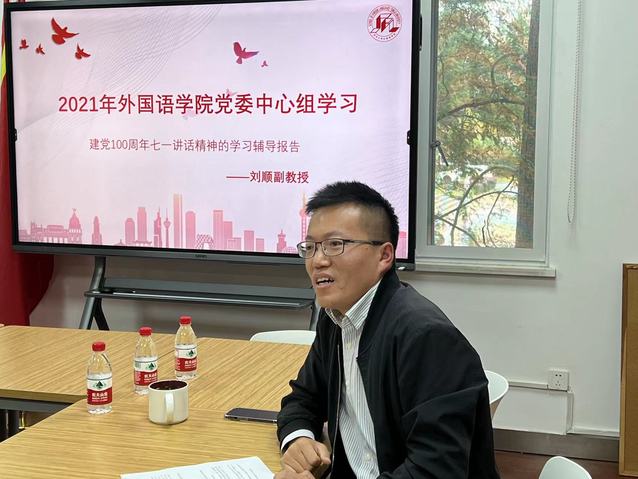 刘顺从“一个主题”“四个伟大成就”“伟大建党精神”“两个结合”“两个不可阻挡”“五个关系”几个方面深入浅出地解读了习近平总书记在庆祝中国共产党成立100周年大会上的重要讲话精神。他最后用毛泽东同志在1964年会见外宾时的讲话“如果要看前途,一定要看历史”来强调,在百年未有之大变局的背景下,我们要有底气,要善于从历史的纵深处去关照现实和未来,要坚持守正与创新,在履行时代使命中充分实现自身价值。