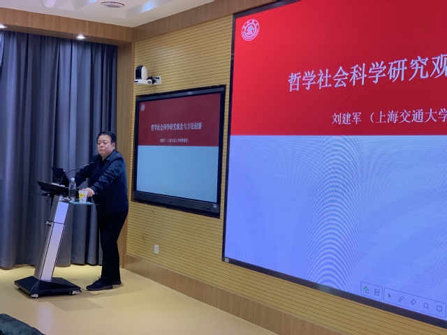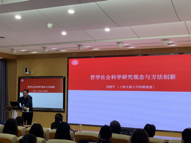 11月18日,上海交通大学特聘教授、博士生导师刘建军做客第77期同济外文讲坛,在汇文楼518室为学院师生作题为“哲学社会科学研究观念与方法创新”的讲座。yl23411永利经理吴贇教授,副经理陈琳教授、董琇教授及学院师生近百人参加了此次讲座。讲座由沈骑教授主持。