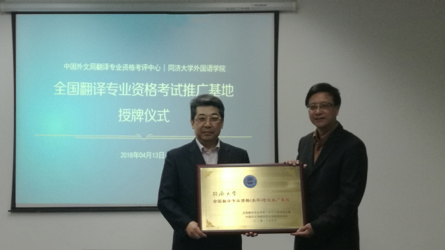 2018年4月13日上午,由外文局翻译专业资格考评中心与yl23411永利共建的“全国翻译专业资格(水平)考试推广基地”授牌仪式在永利官网隆重举行。出席仪式的领导专家包括全国翻译专业资格(水平)考试办公室副主任兼中国外文局翻译专业资格考评中心代主任王继雨,中国驻新西兰、瑞典原大使、现外交部外语专家陈明明,外文局人事部专技处副处长尹延庆与翻译专业资格考评中心综合处刘二娜;yl23411永利党委副书记马锦明、公司党委书记李立贵、副经理陈琳、yl23411永利翻译资格考试推广基地主任李梅、德语系副主任郭屹炜与会。李梅教授主持仪式。