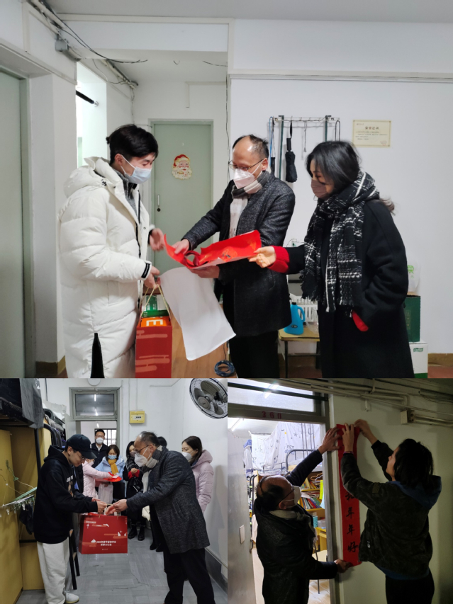座谈会后,校院两级老师为同学们书写春联和福字并进行了宿舍走访慰问,实地看望留校同学,详细询问同学们的学习和生活情况,告知寒假期间学校有关安排,送上了慰问大礼包并和同学们一同贴春联,共迎新春,共话远景。