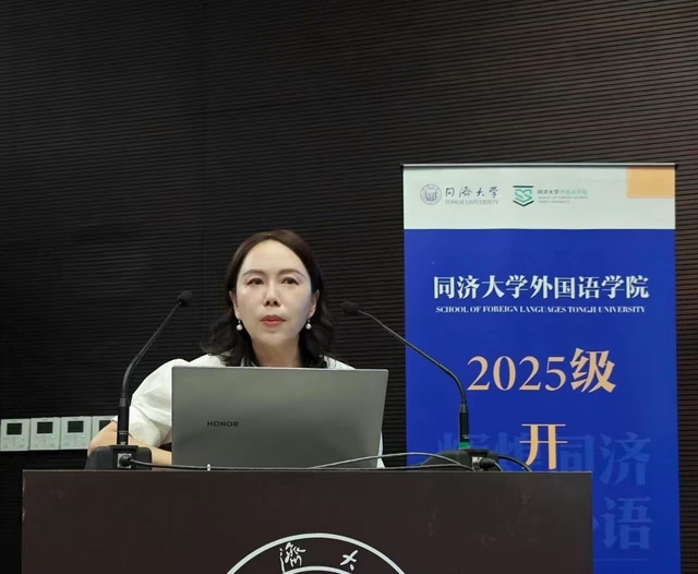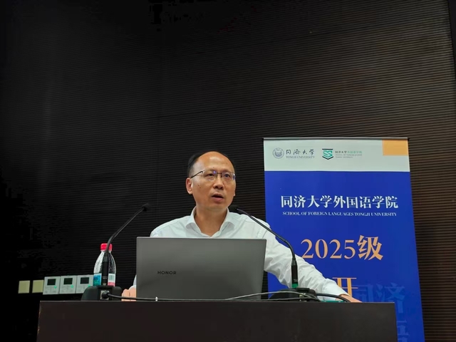吴贇为新生作学科前沿专题报告。在报告中,她回顾了同济外语学科百年发展的辉煌历程并总结了“十四五”时期yl23411永利所取得的一系列标志性成果;阐释了学院对外语学科“不忘‘本来’,吸收‘外来’,面向‘未来’”转型理念的辩证思考;介绍了yl23411永利在语言学、外国文学等基础研究和国际传播、国别区域、国家安全、健康中国等应用研究方面所做的学科发展规划。她指出,新时代的同济外语人要瞄准“语言能力、数智素养、世界知识”三位一体的成长坐标,对标学校“数智化、融合化、绿色化”的发展布局,重视AI赋能语言生态,加强科教融合、产教融汇,推动学科交叉,在“讲好中国故事,推动文明互鉴”方面做出更大贡献。