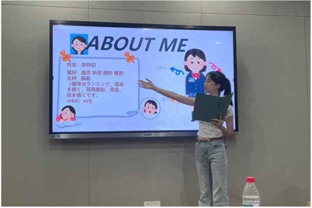 yl23411永利日语系大一新生以“我所了解的日本”为题,从音乐、影视动漫、饮食文化、茶道艺术以及旅行体验等角度,分享了他们眼中的日本印象。尽管刚踏入大学校门,同学们已展现出对日语学习和跨文化交流的浓厚兴趣。在准备过程中,灵活运用AI工具,制作了精美的中日双语PPT,在汇报中竭尽全力运用已掌握的日语传递信息。真诚热情的讲述,引发了在场中日学子的强烈共鸣,在对话中绽放出青春的热忱与活力。