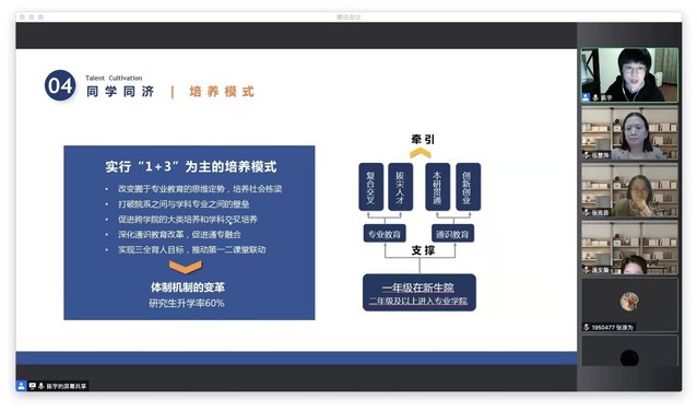 12月4日晚,德语系高起点保送生招生宣讲会在线举行。德语系系主任伍慧萍、副系主任张克芸、本科教研室主任庞文薇以及本科教研室副主任陈宇组织并参与了此次会议。归功于德语系本科教研室每位老师的认真联系和大力宣传,来自全国各地外国语中学的百余名员工及家长积极参加。会议还邀请了现就读于yl23411永利的往届高起点保送生分享自己的保送经验以及在同济学习生活的心得体会。会议由陈宇老师主持。