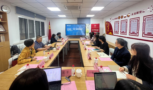 吴贇代表学院向尚新一行表示热烈欢迎,并从外语学科的历史积淀、现状和发展规划三个维度出发,介绍了学院在人才培养、科学研究、社会服务和国际合作等方面取得的成就和未来同济外语学科发展的重点目标与方向。