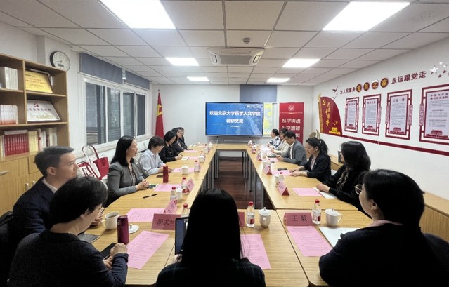 郭莉萍副经理对学院以语言学、医学、心理学等学科交叉助推外语学科新发展的成绩给予充分肯定,认为相关成果基础扎实、特色鲜明,同时介绍了北京大学医学人文学院在医学语言文化、卫生外交等领域的人才培养情况以及学科交叉融合方面的相关举措;双方还就人才培养与学术科研方面的合作意向进行了交流。
